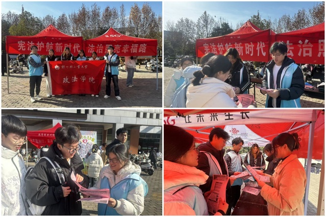 为进一步加强宪法法治教育,科学校区“一站式”学生社区主办、政法学院承办的“宪法护航新时代 法治照亮幸福路”普法活动在科学校区清苑餐厅门口举办。