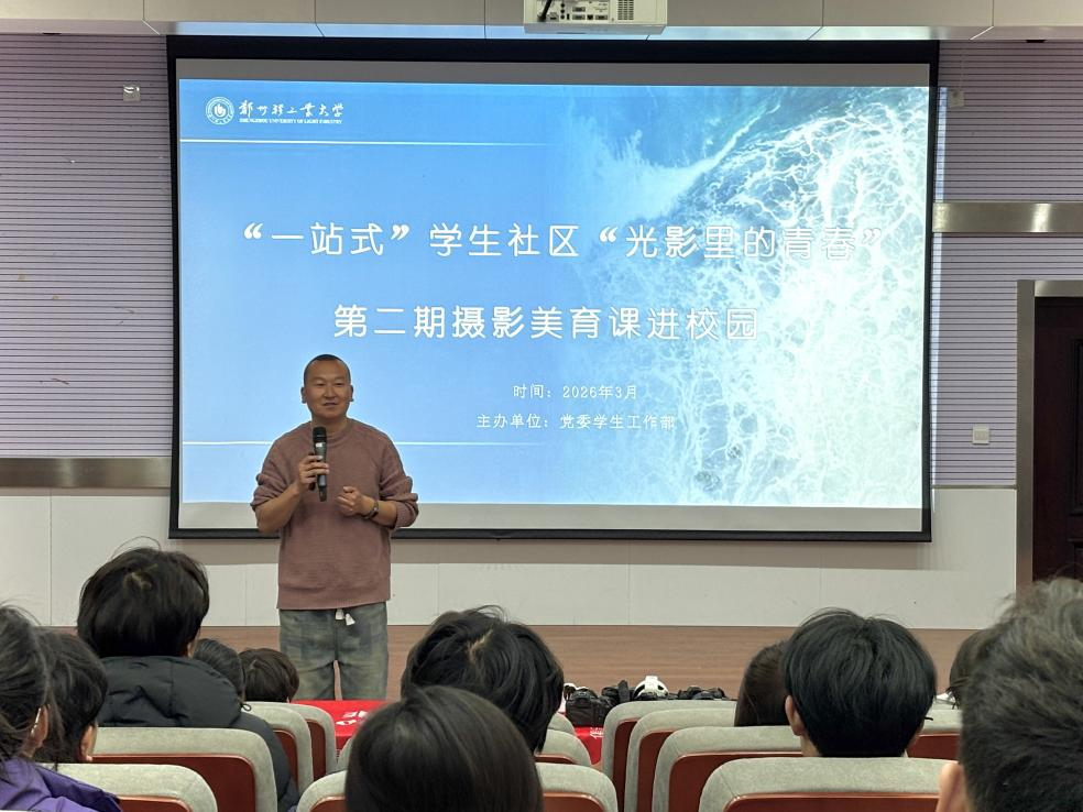 为丰富校园文化生活,提升青年学生艺术审美与实践创作能力,2026年3月13日下午,东风校区“一站式”学生社区在教二楼132教室举办了“光影里的青春”第二期摄影美育课活动。本次活动特别邀请了国家高级摄影讲师、河南省摄影家协会短视频委员会委员孙传涛老师担任主讲,河南省摄影家协会理事陈春玲老师及李乐老师、王巧玲老师莅临现场指导。