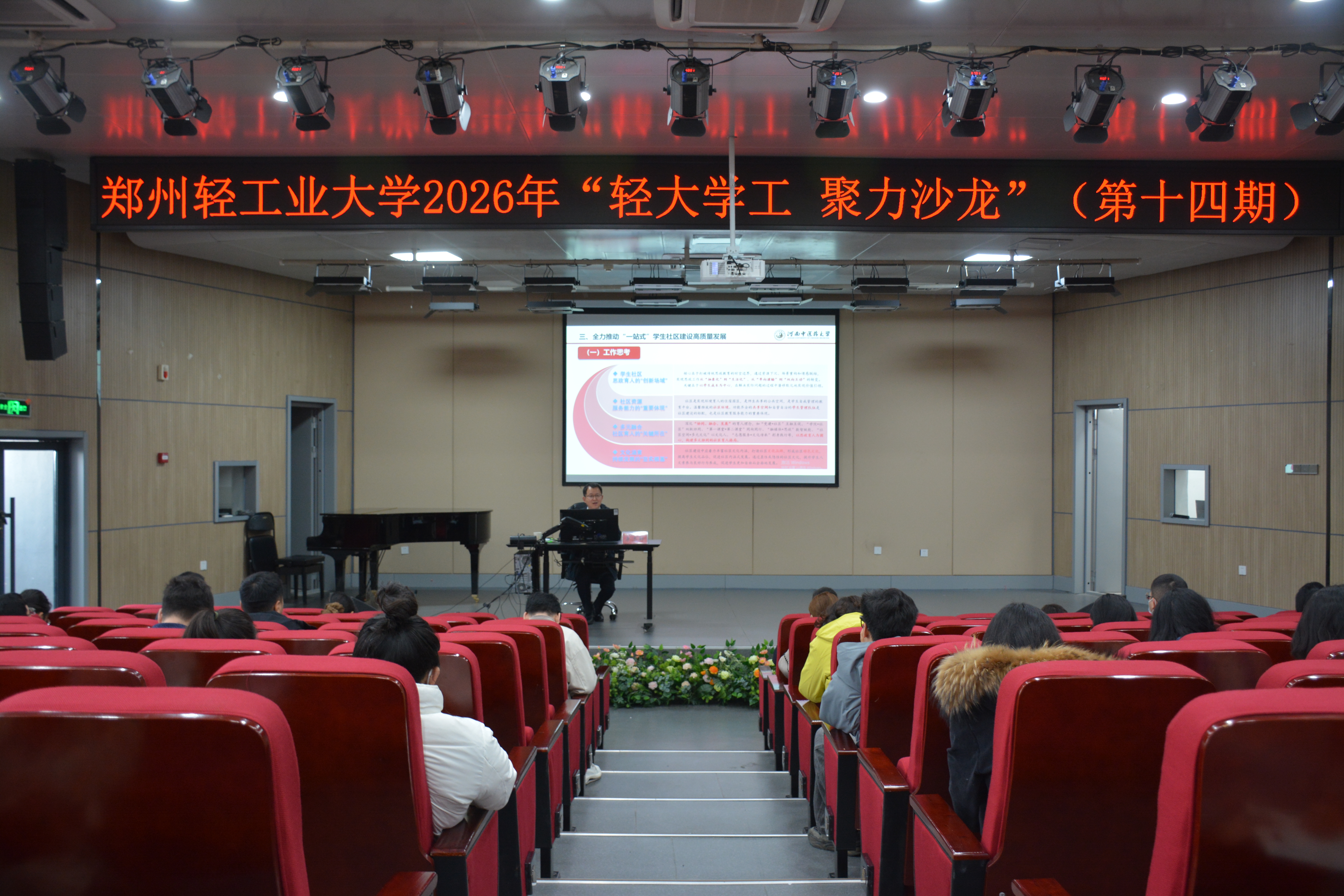 为深化“一站式”学生社区建设,提升学工队伍育人能力,3月18日上午,由党委学工部(处)主办、三实书院“一站式”学生社区召集的第十四期“轻大学工 聚力沙龙”活动,在学校科学校区音乐厅举行。各学院专兼职辅导员代表、党委学工部(处)等部门相关人员100余人参加培训。