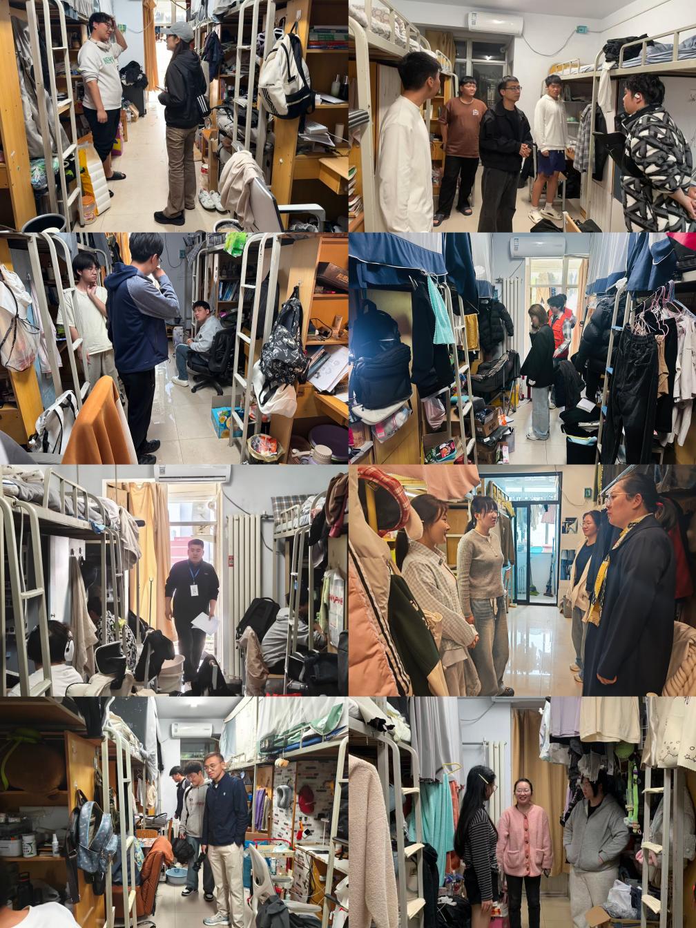 在此次排查行动中,社区辅导员深入学生寝室,坚持“不留死角、不走过场”的原则,对室内地面卫生、物品归置秩序进行了细致检查,并重点针对违规使用或存放大功率电器、私拉乱接电源电线、宿舍内吸烟及乱扔烟头、违规存放易燃易爆危险品等突出安全隐患进行了逐一摸排。走访过程中,辅导员老师们将“重点排查”与“开展教育”相结合。一方面,现场重申《学生宿舍安全规定》及《宿舍卫生标准及行为规范》的具体要求,严肃指出违规用电与消防隐患的潜在危害,强调宿舍安全卫生是保障学生生命财产安全的底线;另一方面,深入了解同学们近期的思想动态、学业进展与生活情况,勉励大家要始终保持阳光奋进的青春姿态,昂扬向上、积极进取。