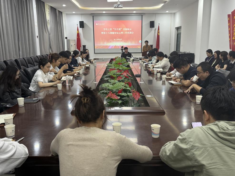 为深入学习贯彻习近平新时代中国特色社会主义思想,全面落实立德树人根本任务,持续推动我校辅导员队伍专业化、职业化建设,9月29日下午,我校在科学校区经管楼116会议室与东风校区办公楼二楼会议室同步举办第十期辅导员沙龙暨第八期学生工作“月月谈”交流展示、第十八期辅导员心理工作培训会。活动由学校党委学工部(处)主办,经济与管理学院、数学与信息科学学院召集,各学院党委(总支)副书记、心理专职辅导员、相关辅导员及学工部(处)、研工部、校团委相关人员共同参与了本次学习交流活动。