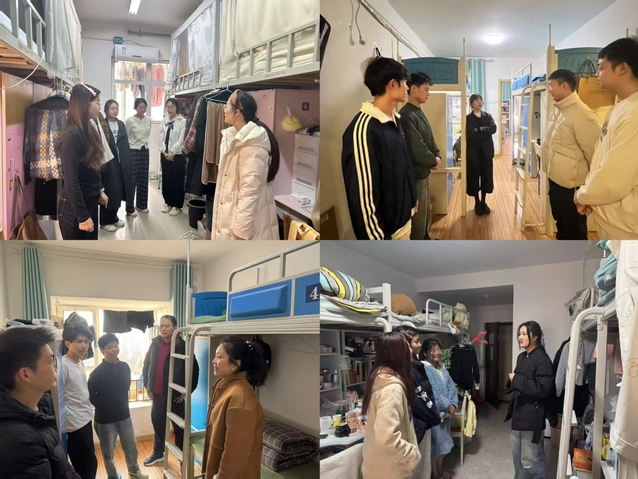 走访过程中,辅导员们询问了同学们的学习生活情况、了解学生思想动态,教育引导学生要认真复习备考。他们仔细检查宿舍环境卫生,排查安全隐患,对宿舍堆放杂物、卫生间存在异味及宿舍环境卫生情况脏乱差等情况要求学生现场整理并清扫,并再次提醒学生不能违规使用电器。同时教育引导同学们认真学习《宿舍卫生创建标准及宿舍行为规范》,自觉养成良好的宿舍卫生习惯和文明行为习惯。