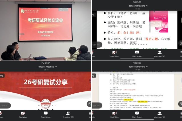 为精准护航2026届毕业生考研复试备考,增强考研学生复试竞争力,近日,三实书院“一站式”学生社区于1号楼203会议室举办2026届考研复试经验交流会。本次活动由食品与生物工程学院承办,一百余名学生通过线上线下相结合的方式参与交流。会议由三实书院育人导师、食品与生物工程学院辅导员王兆博主持。